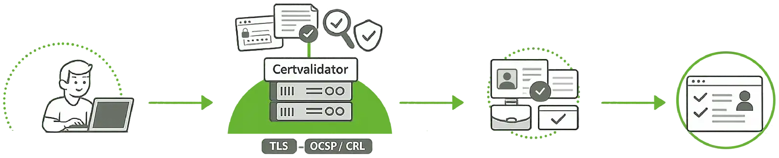 Certvalidator acts as a secure intermediary between the user and the platform, managing the complete authentication process using a digital certificate.